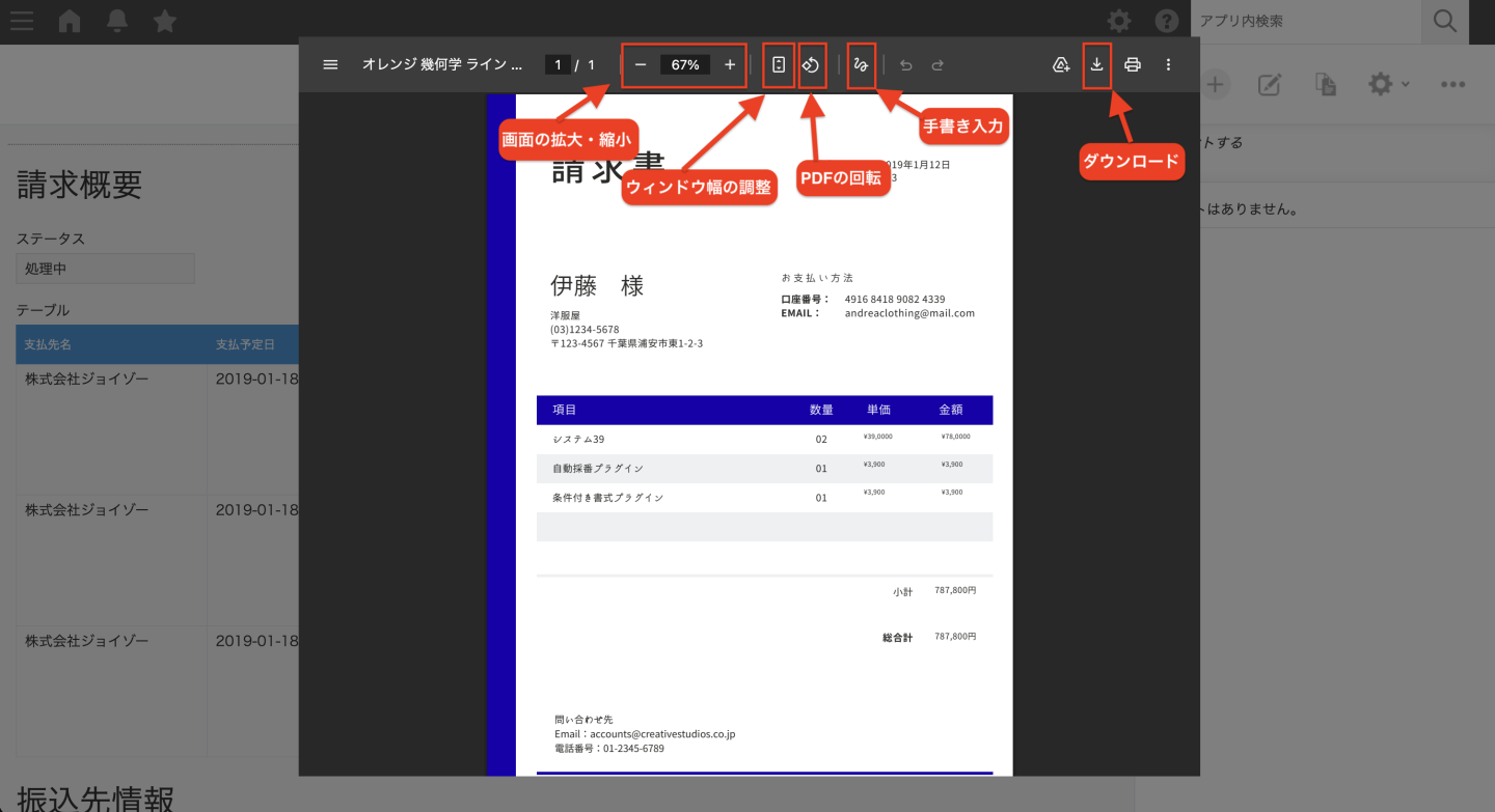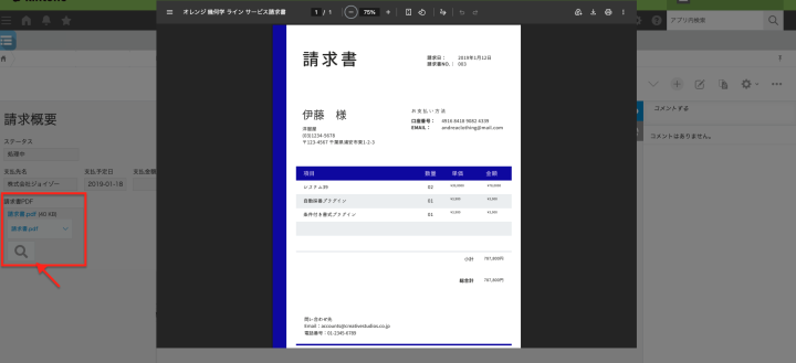 「PDFプレビュープラグイン」を使うと、ダウンロードという手間を一切挟まずに、kintoneの画面上でそのままPDFの中身を見ることができます。