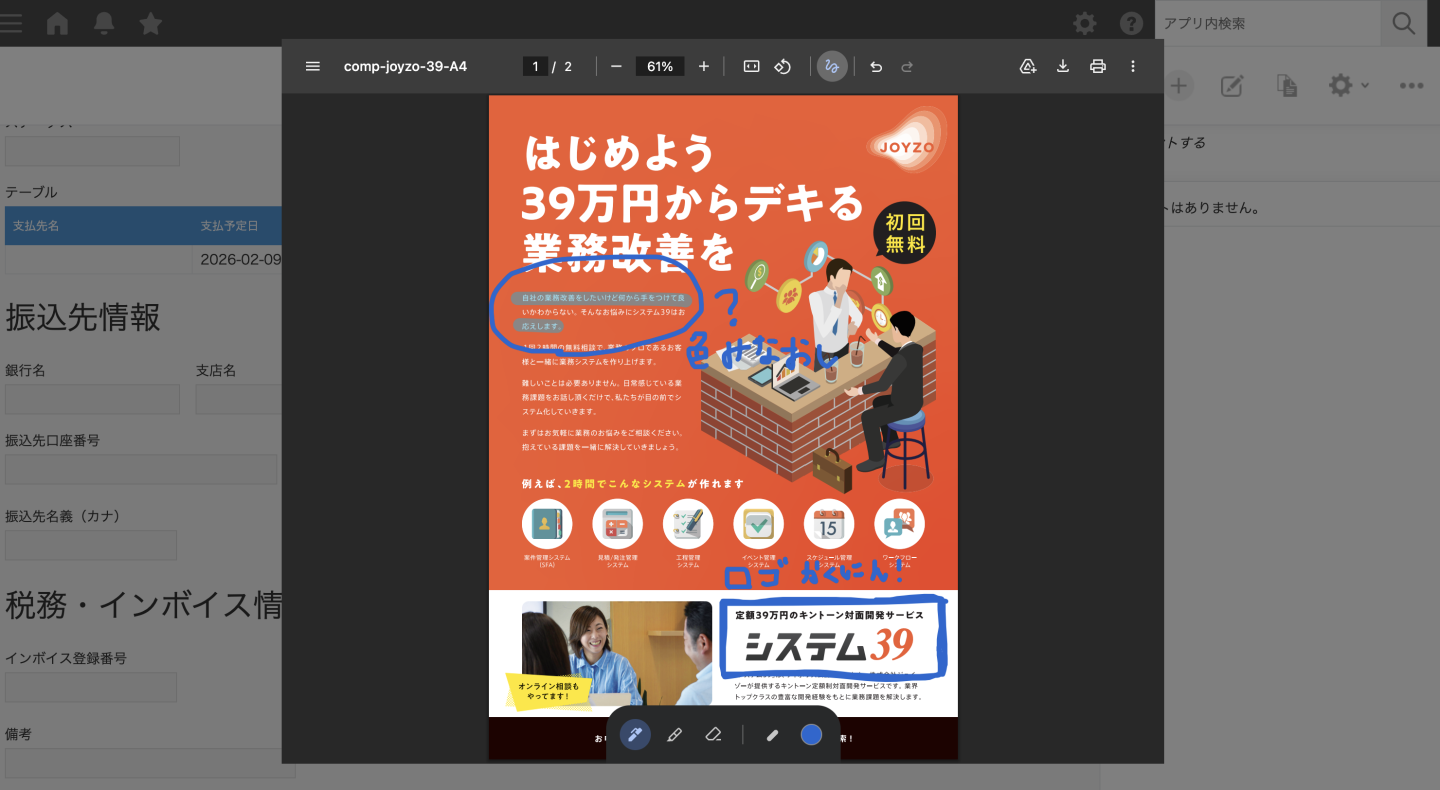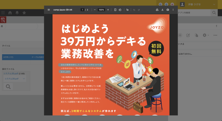kintoneに添付されたPDFがその場でパッと見えるようになると、情報の確認作業が驚くほどスムーズになります。