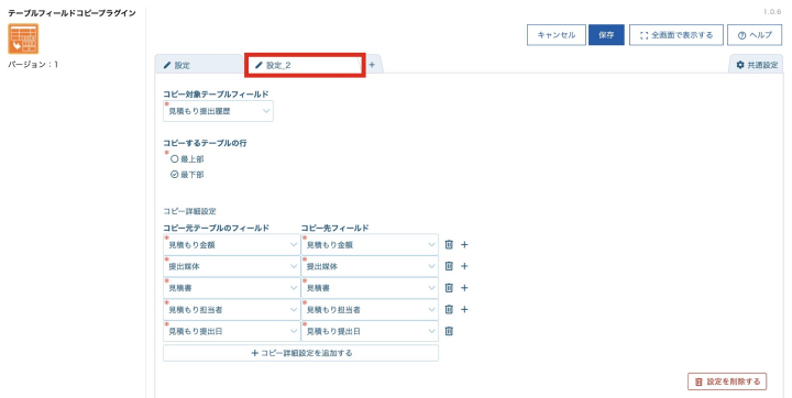 💡テーブルフィールドコピープラグインの詳しい設定は、こちらをご確認ください