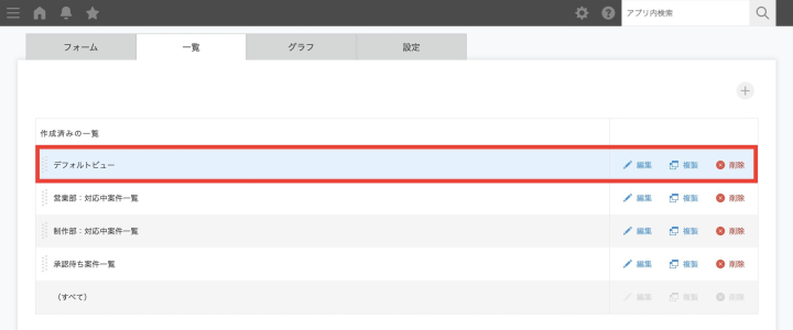 本プラグインを設定すると、「デフォルトビュー」という一覧が自動的に作成されます。