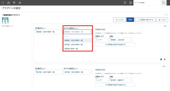 本プラグインでは、ユーザーごとに表示する一覧を細かく設定することが可能です。