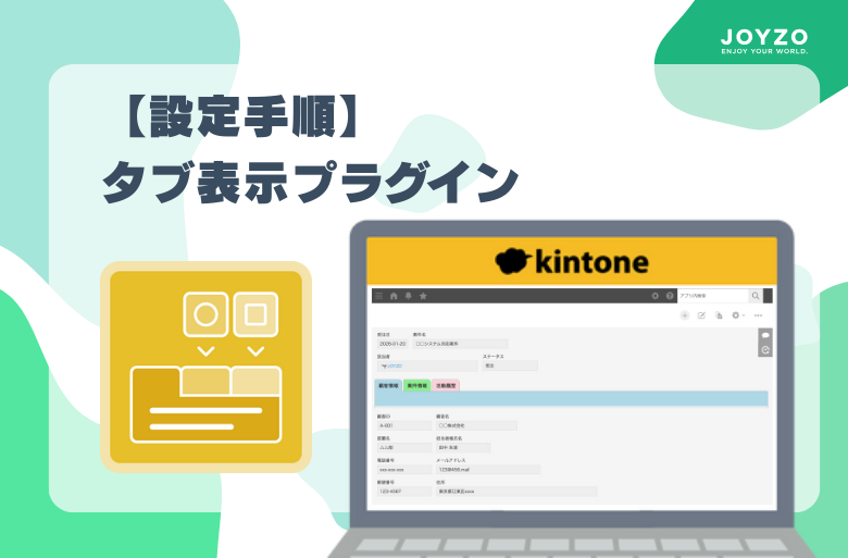 「設定」タブを開き、タブ名称の入力し、表示するフィールド、タブカラーを設定します。