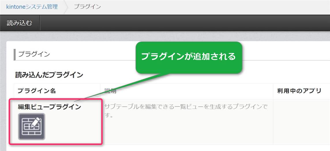 - 読み込んだプラグイン一覧に「テーブル編集ビュープラグイン」が追加されます。