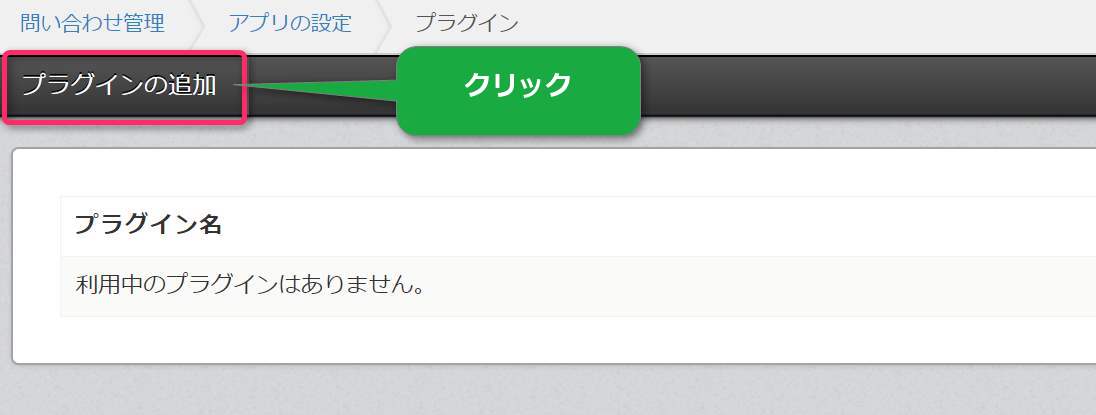 - アプリの設定画面の[設定]タブから「プラグイン」をクリックします。