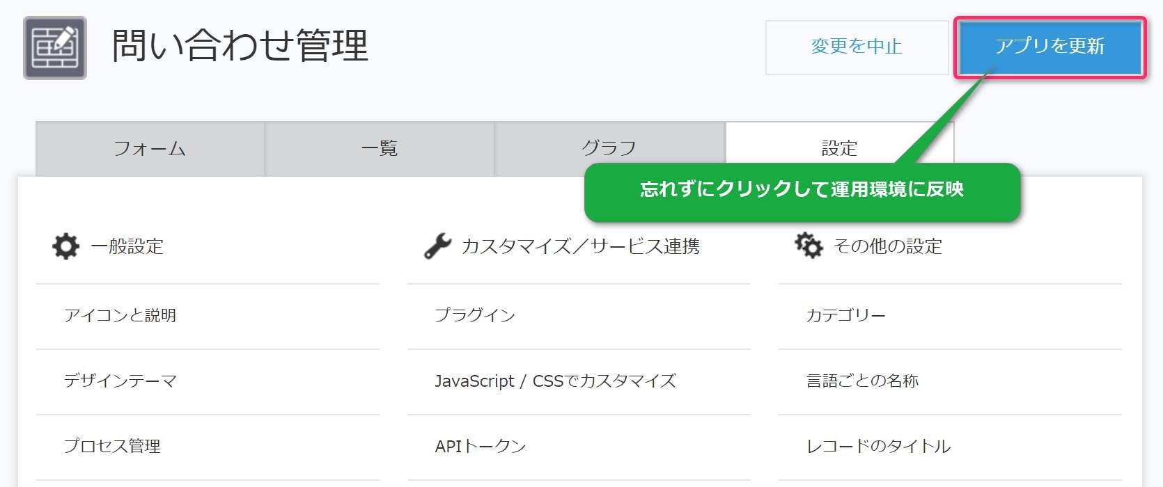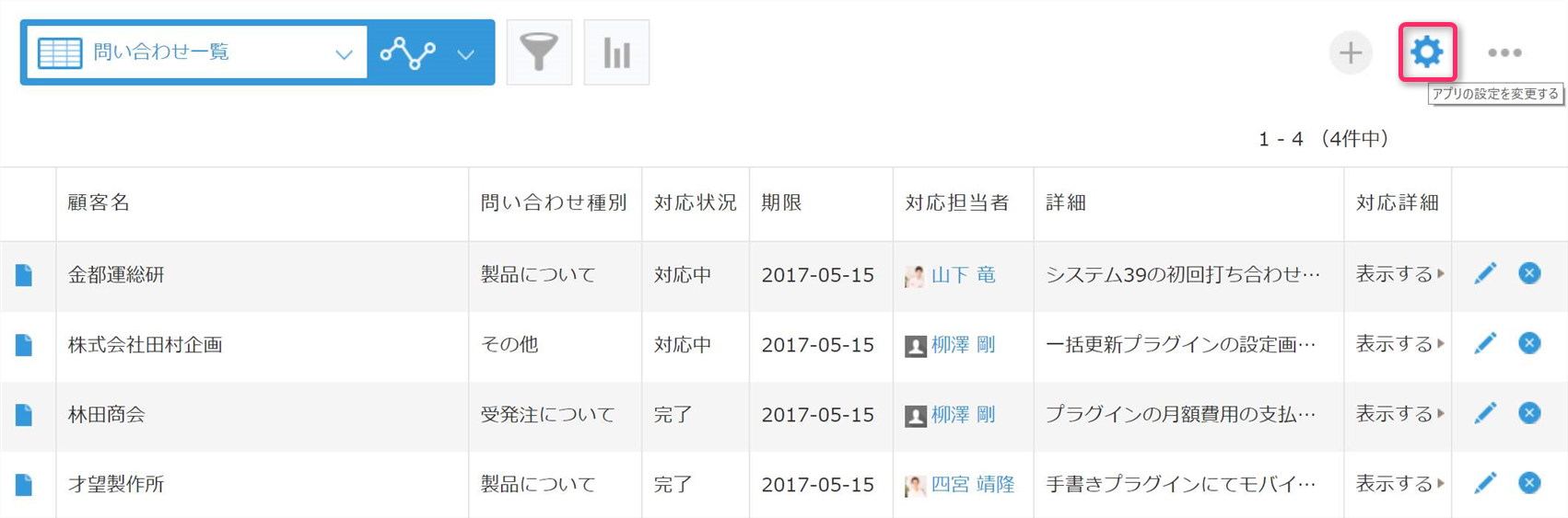 - プラグインを設定するアプリの[アプリの設定を変更する]をクリックします。