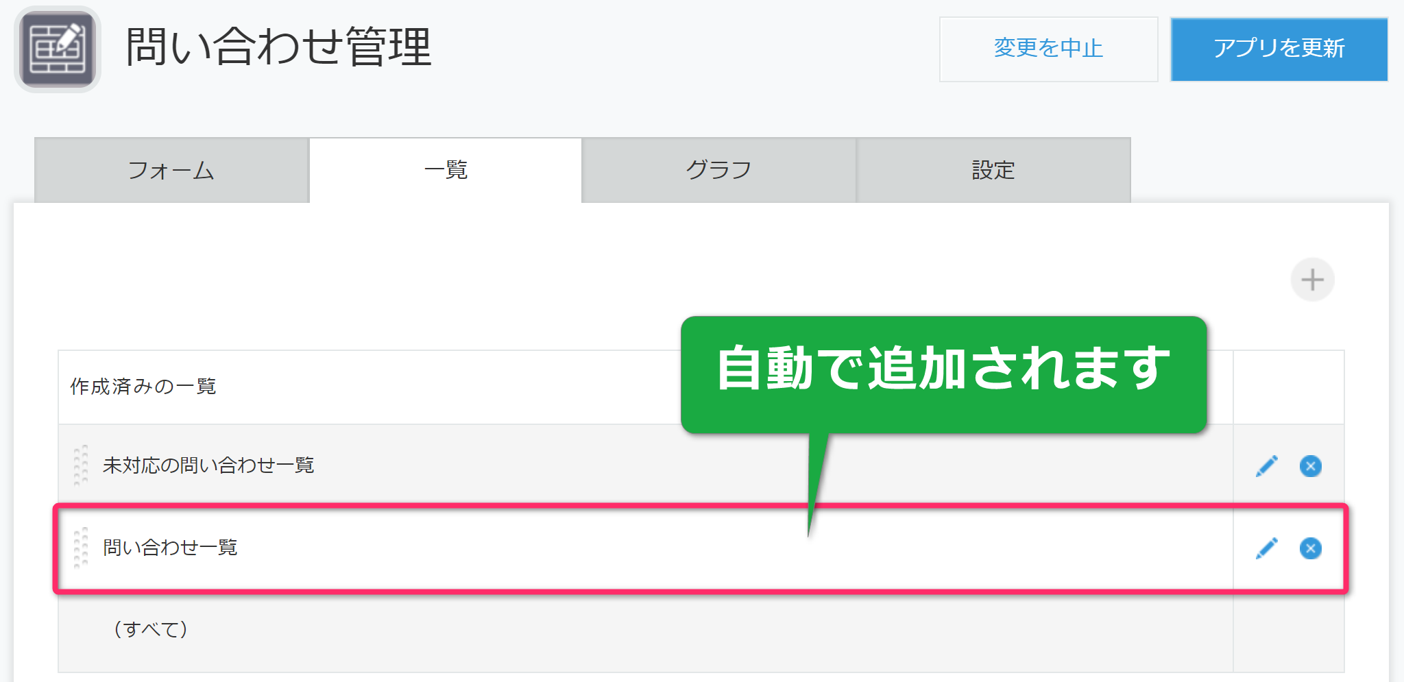 - 追加可能なテーブル編集ビュー(一覧)は1つだけです。