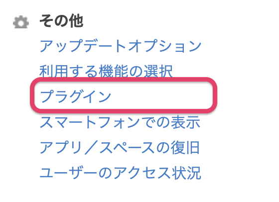 - [kintoneシステム管理]画面より、その他の「プラグイン」をクリックします。