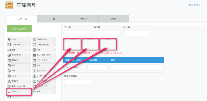 - 作成した各スペースに要素IDを設定します。設定を保存しアプリの作成を完了します。