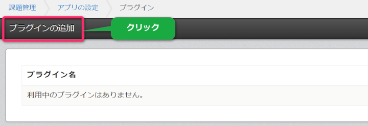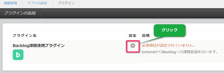 - 「プラグイン」一覧からBacklog課題連携プラグインを追加します。