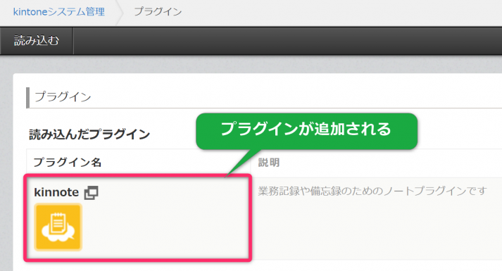 - 読み込んだプラグイン一覧に「kinnoteプラグイン」が追加されます。