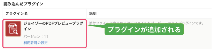 - 読み込んだプラグイン一覧に「ジョイゾーのPDFプレビュープラグイン」が追加されます。