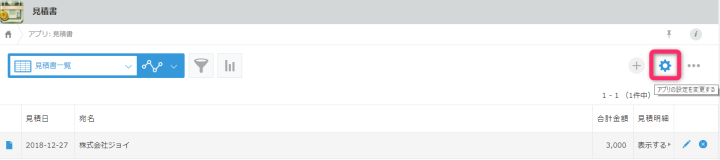- 画面右上の歯車をクリックし、[kintoneシステム管理]をクリックします。