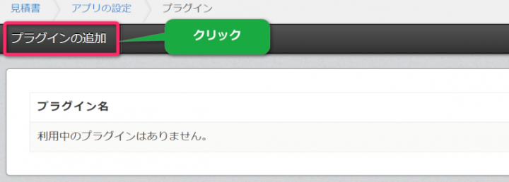 - アプリの設定画面の[設定]タブから「プラグイン」をクリックします。