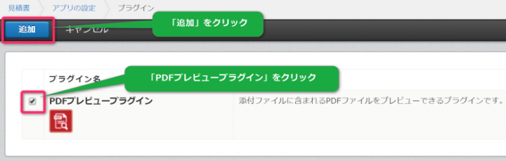 - 「プラグイン」一覧からPDFプレビュープラグインを追加します。