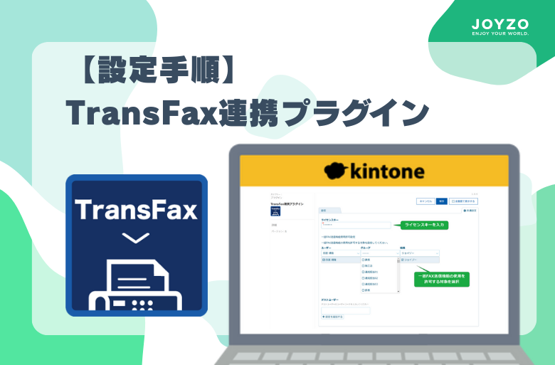 一括FAX送信を行うには、共通設定の「一括FAX送信機能使用許可設定」で使用を許可する対象(ユーザー、グループ、組織)を選択してください。選択されているユーザーのkintone画面上でのみ「一括FAX送信」ボタンが表示されます。