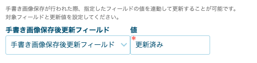 - プラグイン設定画面で、「手書き画像保存後更新フィールド」の設定を行う