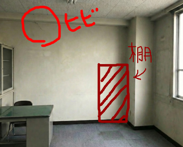 配置図の写真に「ここに棚」と矢印を書く