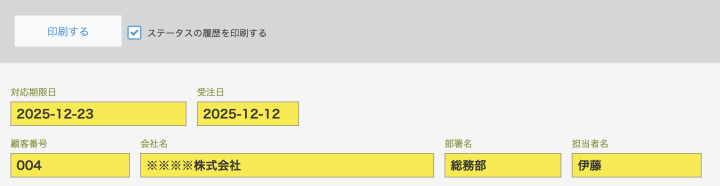 印刷画面でも詳細画面と同様に黄色で書式反映が行われます。