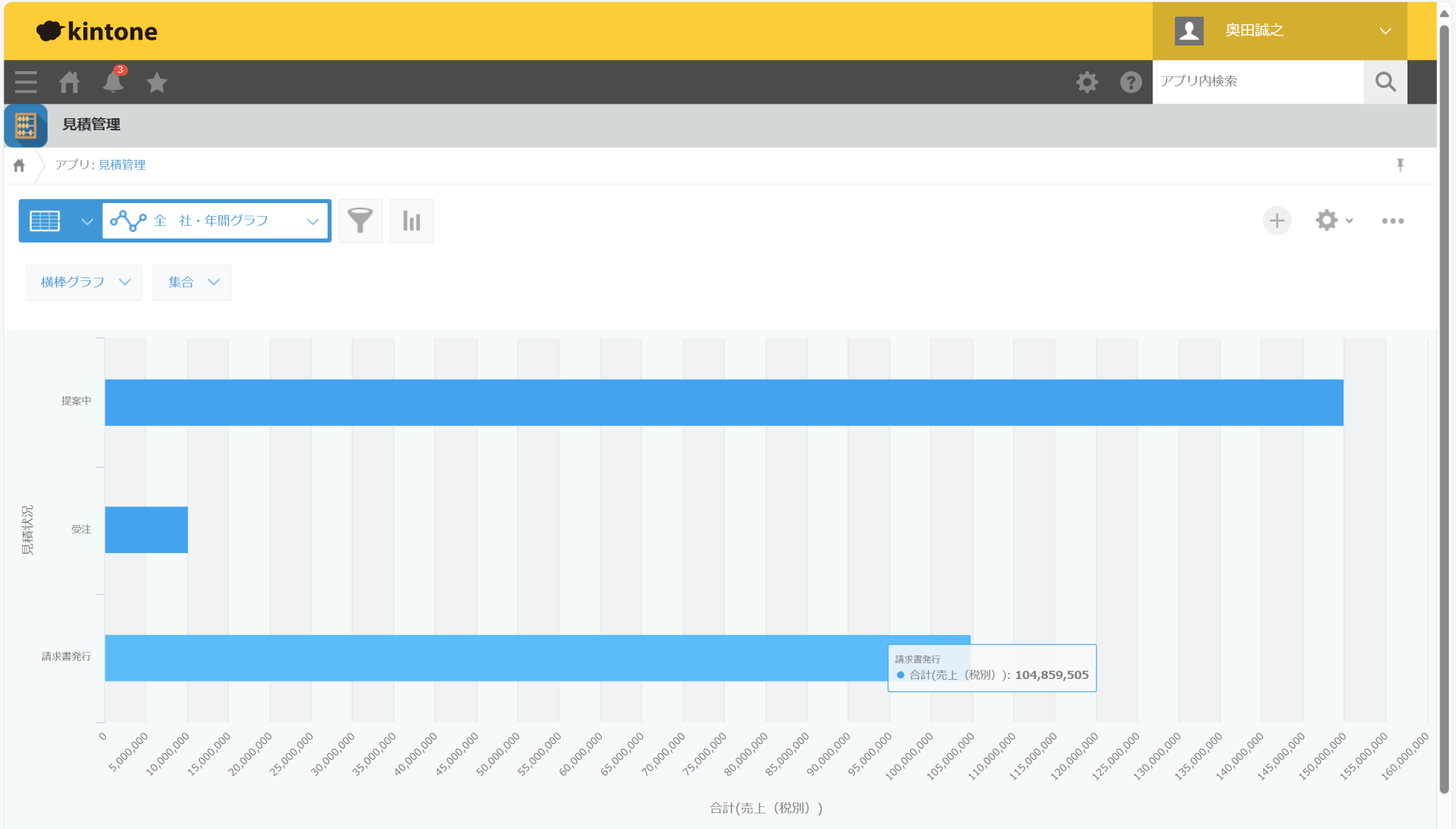 最も改善効果を実感したのは案件進捗や実績をリアルタイムで追跡できるようになった点です。従来は2〜3ヶ月遅れでようやくデータが出揃い確認ができる状態でしたが、今では売上見込みが即座にkintone上でグラフ付きで確認できます。会社として案件全体の動向を定量的に把握できるようになっただけでなく、顧客ごとの売上状況など詳細な分析も可能になりました。