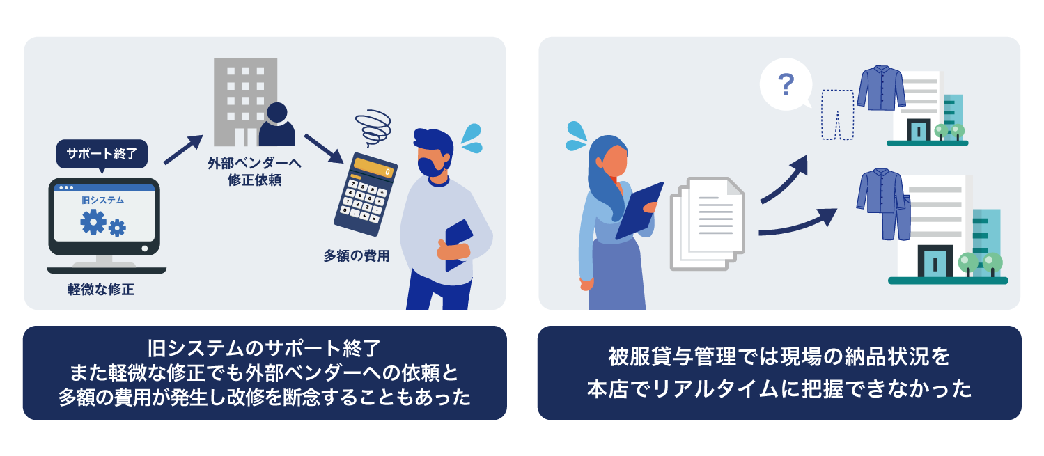 特に被服貸与管理においては、単なるリプレイスにとどまらず、従来は徹底できていなかった各営業所での納品チェック機能を新たに追加するなど、現場の状況に即した仕組みづくりを目指しました。