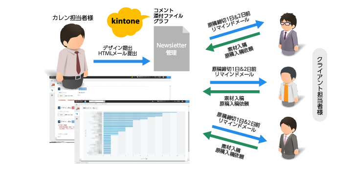 ・kintoneのリマインダ機能により、期日間近に通知を受けることで原稿の期日管理が徹底された。