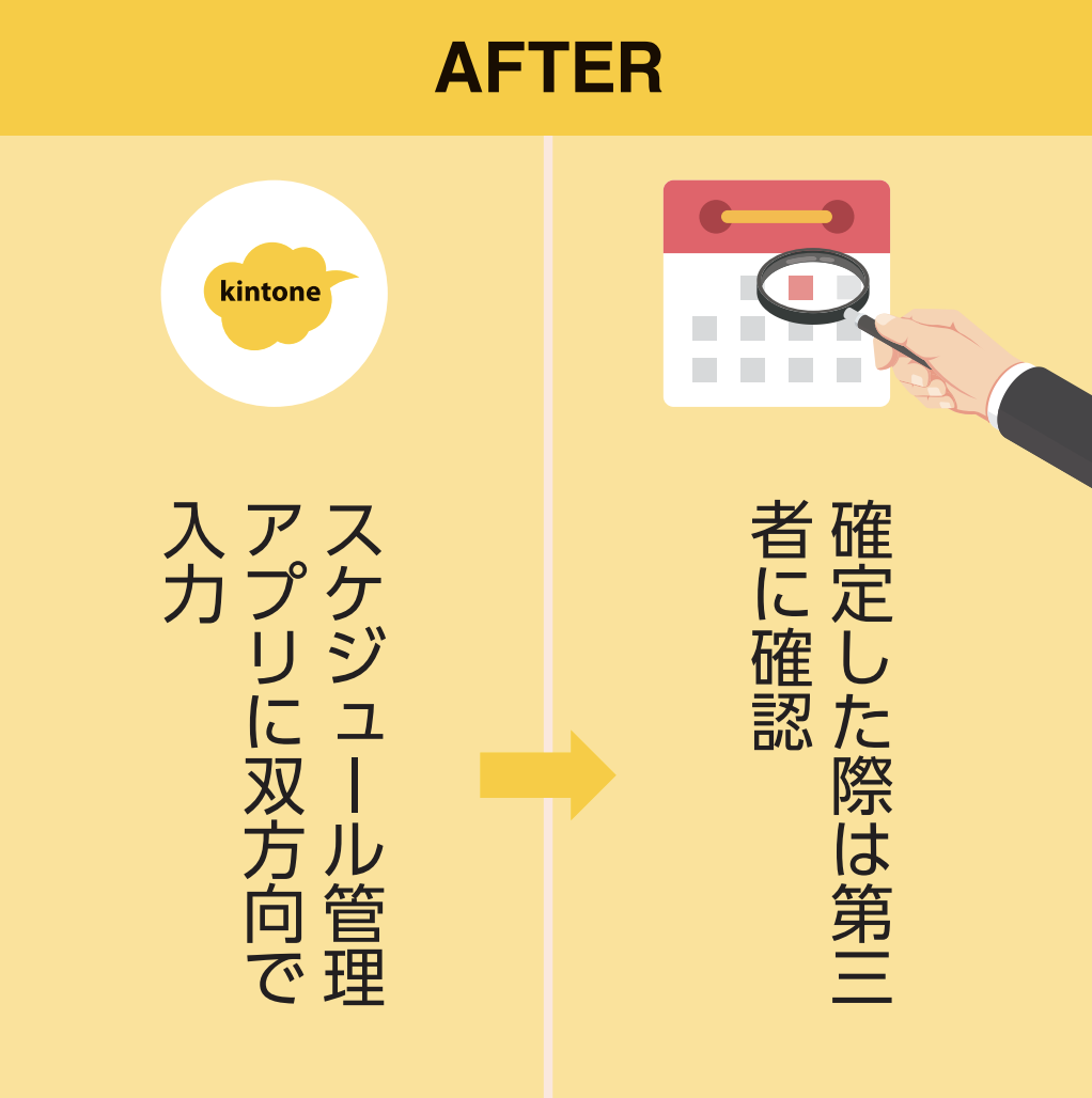 スケジュール管理アプリにカレンダーPlusを連携させ、見易さや入力のし易さを向上させたことで、工事業者にも入力してもらうことが可能になり、双方がアプリ上で予定を確認できるようになりました。