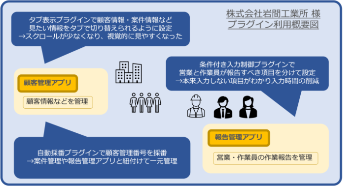 営業も作業員も、作業報告を同じアプリで管理していたが、営業と作業員が報告すべき項目が異なっていたため、本来は入力する必要のない項目まで入力してしまい、時間がかかってしまっていた。