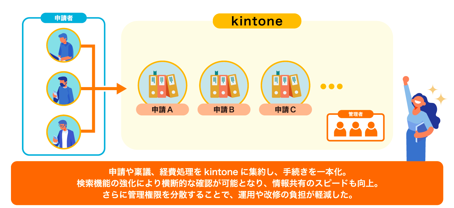 成果:稟議・経費・PC関連申請をすべてkintone上に集約。利用者、管理者を含む、全体的なユーザビリティが向上した