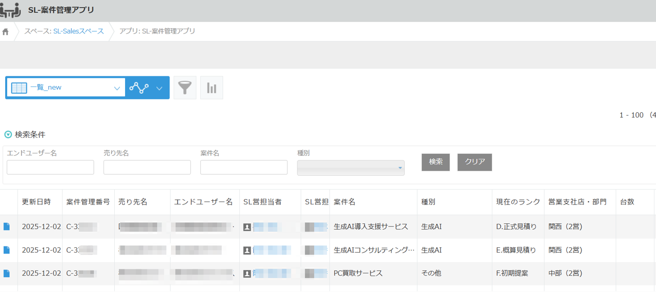 この状況を改善するため、営業全体で共通利用できる統合型の顧客管理アプリを構築し、そこから各部門の案件を作成できる仕組みを整える必要性が高まりました。