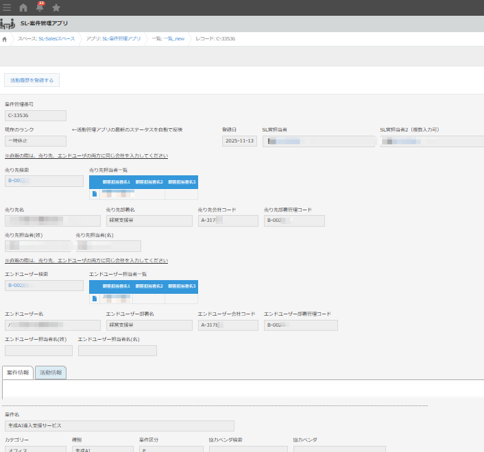 また、活動管理アプリのステータス変更が案件側に反映されないなど、アプリ間を連携させる設定やプラグインの知識も経験も足りていないという課題も発生していました。