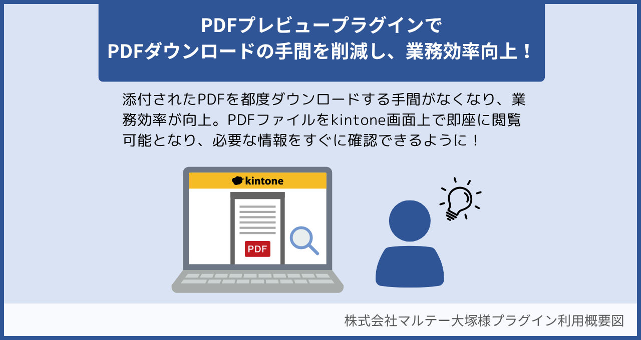 「PDFプレビュープラグイン」の導入により、添付されたPDFをわざわざダウンロードして確認する手間がなくなりました。これにより、業務効率が向上し、必要な情報をすぐに確認できるようになりました。