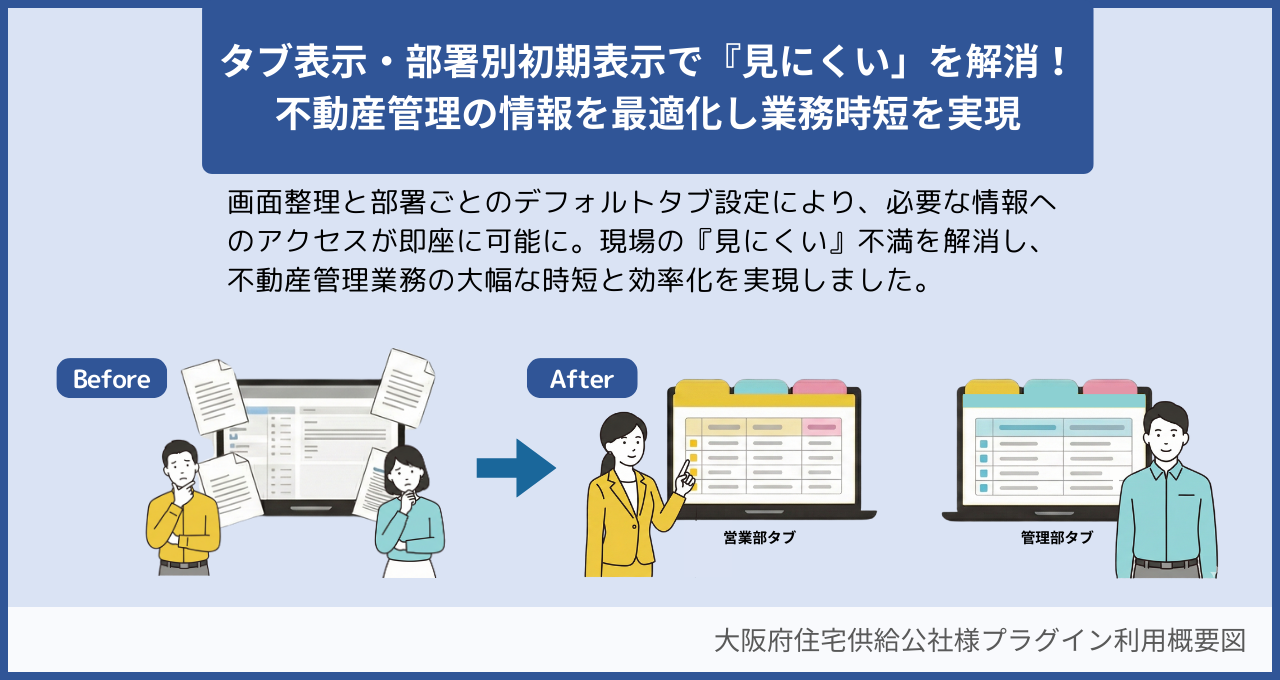 特に、部署ごとにデフォルトで表示するタブを設定できる機能を活用することで、各担当者が必要な情報だけを即座に確認できるようになり、業務の時短につながっています。