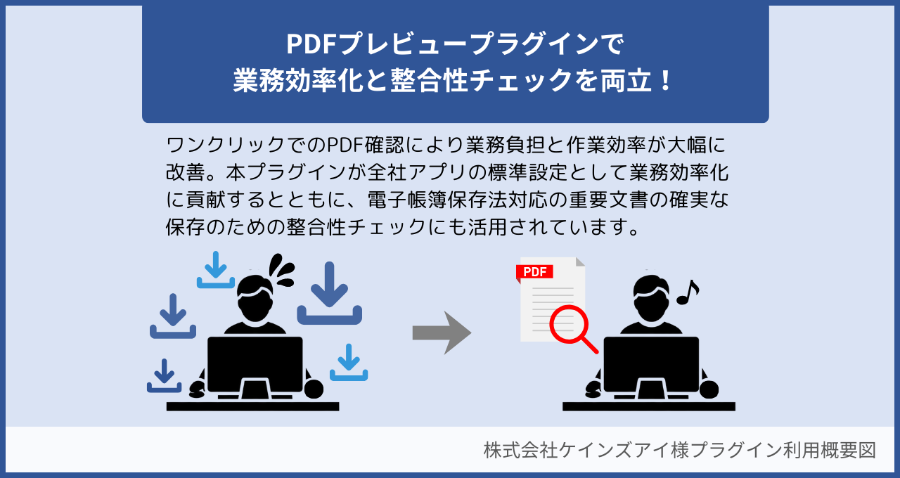 PDFプレビュープラグイン導入後は、ワンクリックでPDFを開けるようになったことで、業務負担が減少し、スムーズな確認が可能になりました。