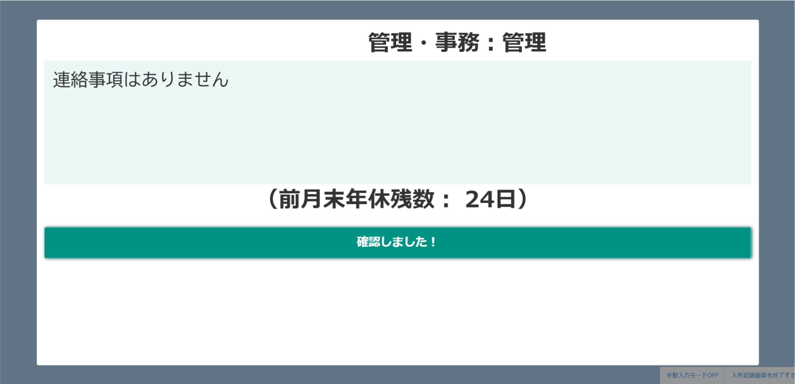- 紙の出勤簿による目視確認の手間と、目視故のリアルタイムな出勤状況把握の遅れ